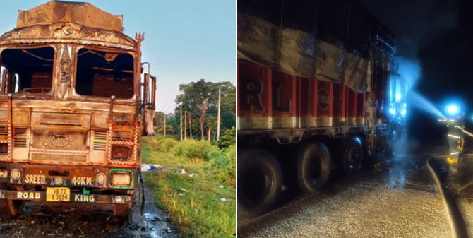 दुर्गा प्रसाईंका समर्थकद्वारा झापामा चक्काजाम, दुई भारतीय ट्रकमा आगजनी